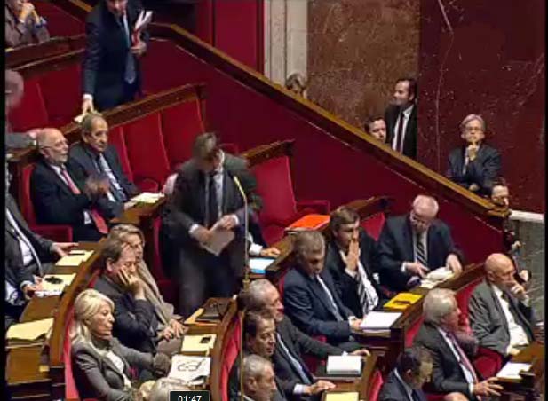 Non ce n’était ni blague ni une intervention piège adressée au ministre, quand on sait quelle est la véritable place de la femme en France en général et dans l’univers politique en particulier. Tel que l’atteste la photo ci-dessus ,qui est celle de l’entourage immédiat du député Jean-Louis Christ au cours de son intervention ,j’ai compté 24 hommes pour deux femmes. D’ailleurs ce sont des hommes et des femmes qui sont d’une « jeunesse » éclatante, mais ça, c’est un autre débat et sur une autre parité. N’en parlons même pas de la représentativité de la société française, la vraie, celle du quotidien avec ses diversités et ses couleurs. Celle dont on fait mine qu’elle n’existe pas dès lors qu’on arrive aux seuils des portes de l’Assemblée nationale .