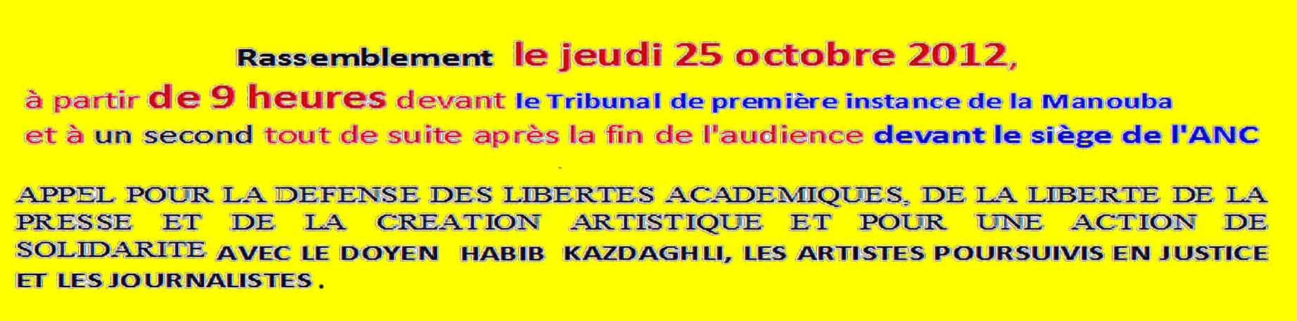 Salah Ben Omrane 23 octobre 2012 18:30 En avril 2011 à Tunis, le cinéaste Nouri Bouzid a reçu un coup de barre sur la tête, de la façon la plus lâche ; Le dimanche 26 juin 2011, Habib Belhadi, directeur … Lire la suite La honte indélébile sur le gouvernement par l’affaire du Doyen Habib Kazdaghli