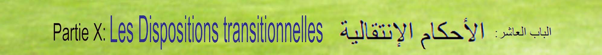 – تدخل أحكام الباب الثالث المتعلق بالسلطة التشريعية باستثناء الفصول 52 و53 و54، والقسم الثاني من الباب الرابع المتعلق بالحكومة حيز النفاذ بداية من يوم الإعلان عن النتائج النهائية لأول انتخابات تشريعية.