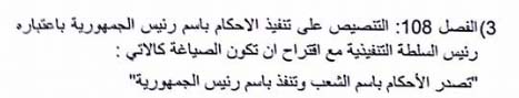 Je l’ai réécrit en arabe (ne trouvant aucun site le mettant en ligne dans une version pratique et plaisante, car il n’existe, avant celle-ci, sur le net qu’en format PDF ) et je l’ai traduit en français. Mes remarques en couleur marron, sont reproduites sous les articles qui sont inchangés ou ont subi de simples modifications. D’autres articles ont été ajoutés au projet de la constitution. J’ai ajouté d’autres commentaires .