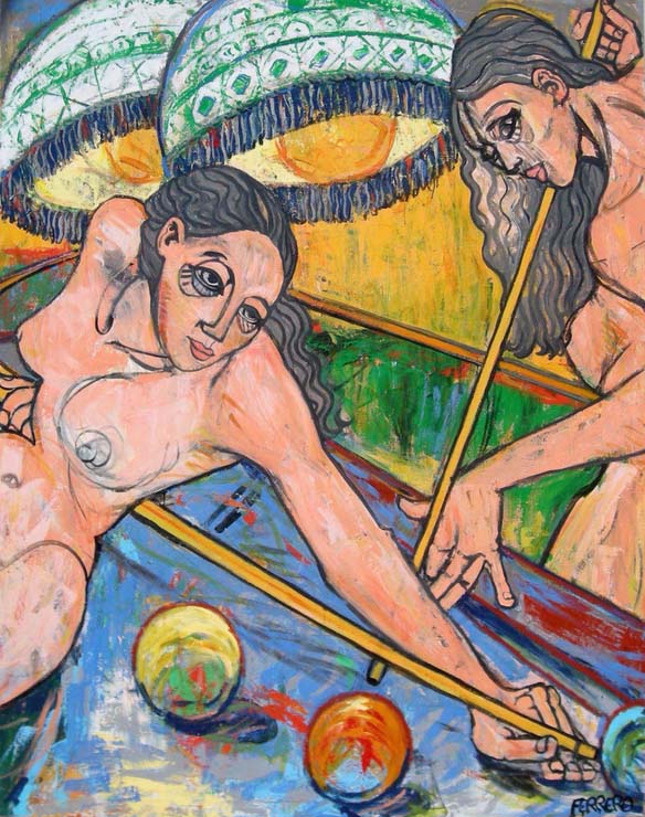 La position du corps de la députée fait penser à une joueuse qui tient une quille devant un billard dans un environnement de couleur verte. Un jeu que jadis était réservé aux hommes où les femmes ne fréquentaient pas les salles de jeux. Avec le jeu de billard, le rapprochement avec la sexualité est vite fait (la quille, le billard, les positions suggestives du corps de la femme pendant le tir). La « femme » n’était présente dans les salles de billard que pour orner les murs dans des positions sexy et non pour jouer.