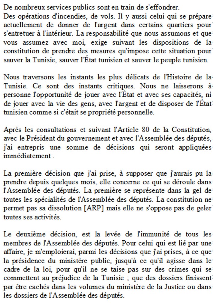 Le Président de la république tunisienne Kaïs Saied a fait une intervention publique retentissante. Celle-ci i est arrivée en clôture d’une journée assez tendue qui a vu plusieurs manifestations dans les principales villes du pays.