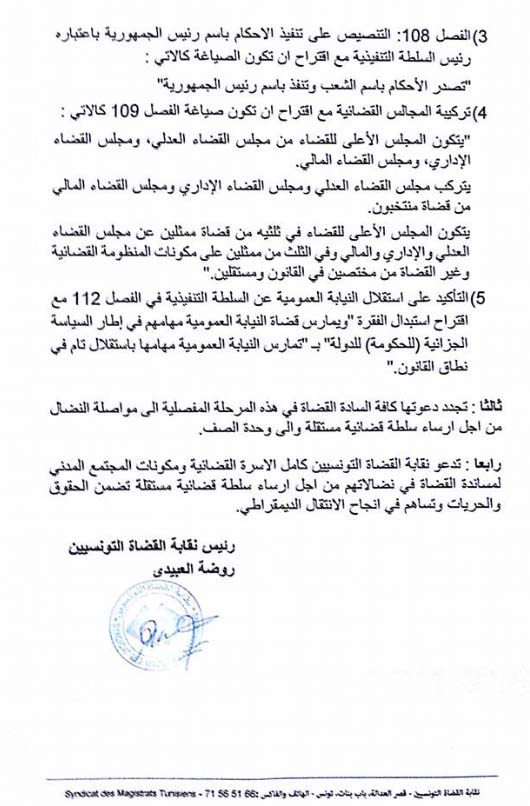 Amendements proposés par le Syndicat des Magistrats Tunisiens des articles 108,109 et 112.